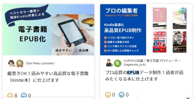 | BookIssue | 電子書籍制作全般、原稿執筆、表紙デザイン、E-PUB化、KDPの登録代行 | https://bookissue.biz/ |
