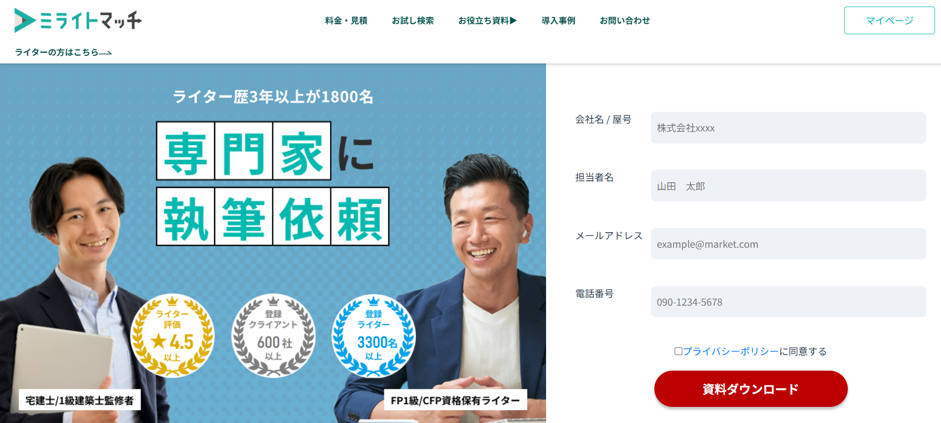 たとえば、マッチングサービスのミライトマッチの場合は、多ジャンルで対応できる専門のライターが登録しています。