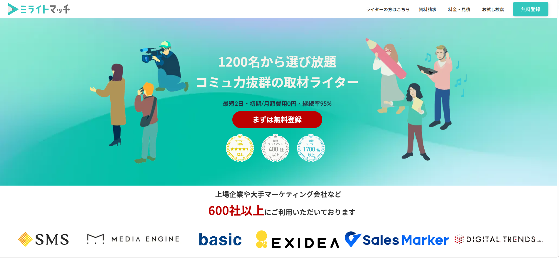 インタビュー記事の作成依頼をするなら、ミライトマッチがおすすめです。