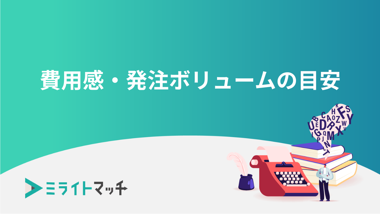 市場における費用感と発注ボリュームの目安を、クラウドソーシングサイト10)や公開情報、周囲の実案件情報などをもとにまとめました。これらはあくまで目安であり、依頼するライターの実績や、依頼範囲(構成作成や画像選定の有無など)によって変動します。