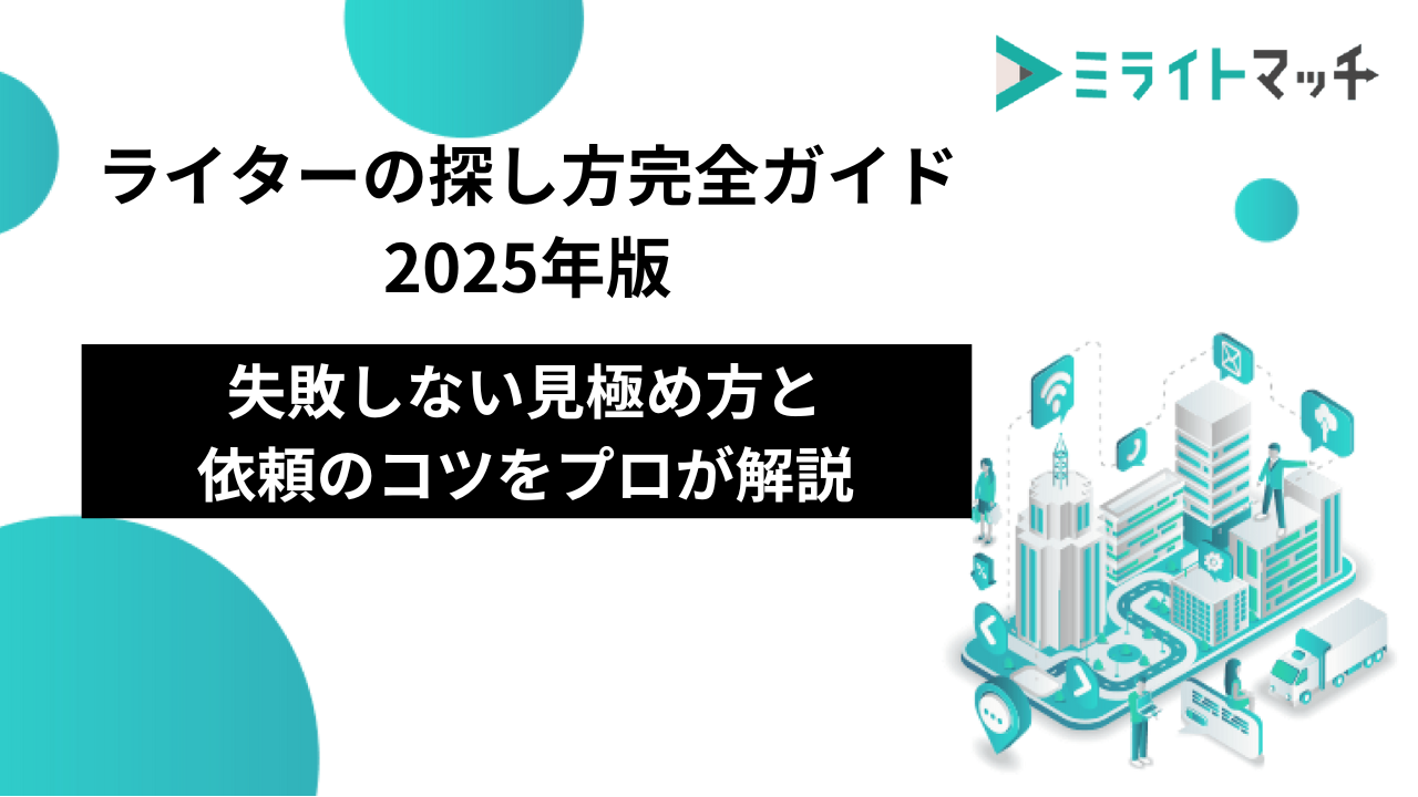 どのライターが自社に合うかわからない場合や、面談設定やスキル確認に時間を割けない場合は、ミライトマッチのようにライター選定・面談設定まで伴走するサービスを利用することで、失敗リスクを最小化できます。